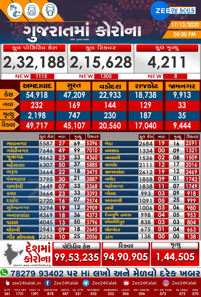 Friends, we are here to provide you with date wise daily statistics of coronavirus of Gujarat as well as daily statistics of India and the world accurately and according to government statistics and government press notes.